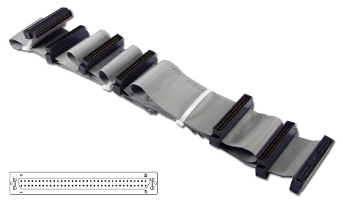 The pictures below show a long flat cable, containing 7 connectors as well as a (red) smaller 4 to 1 SAS or SATA cable.