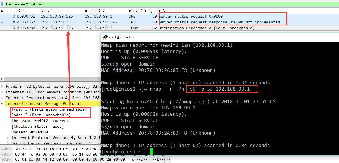 原理:向一台没有开启对应端口的UDP数据包,返回一个ICMP destination port unreachable消息。
