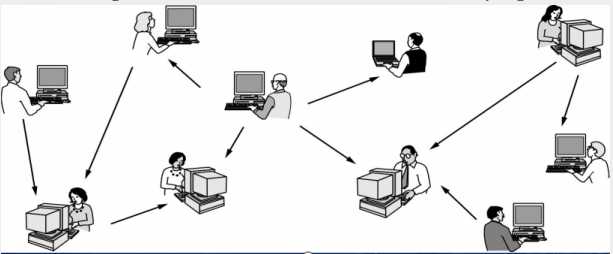 人与人之间的信息大部分都是使用客户机-服务器模式获得的,但是还是存在着一种完全不同的信息模式,这种模式十分的流行,它采用一种称为对等的(peer to peer)通信技术,在这种通信形式下,组成一个松散群体中的每个人可以与群体中的其他人进行通信,每个人都可以与其他人通信,这里客户端服务器没有固定的分工。