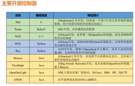 南向接口层主要对各种南向接口协议的支持,如Open Flow,Netconf,OVSDB等,控制器通过接口层的通道实现对底层网络的管理