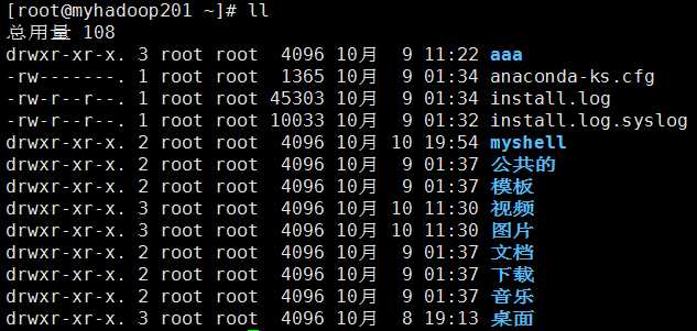 ls -l ( 可以简写为ll ) 列出目录中文件的详细信息