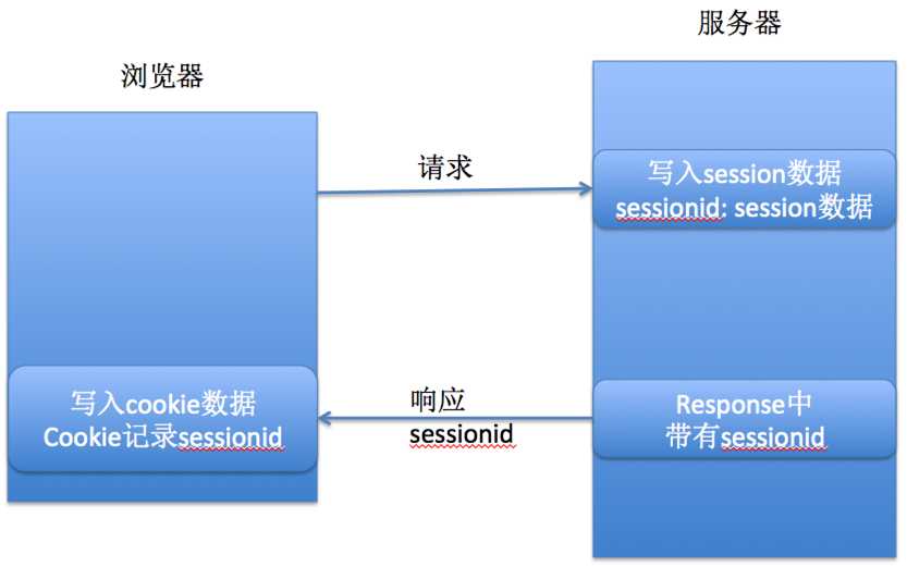 在使用Session后,会在Cookie中存储一个sessionid的数据,每次请求时浏览器都会将这个数据发给服务器,服务器在接收到sessionid后,会根据这个值找出这个请求者的Session