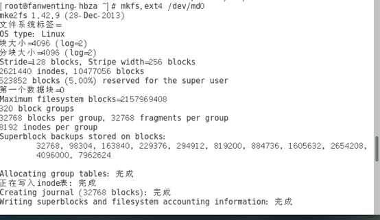 [root@fanwenting-hbza ~]# mkfs.ext4 /dev/md0