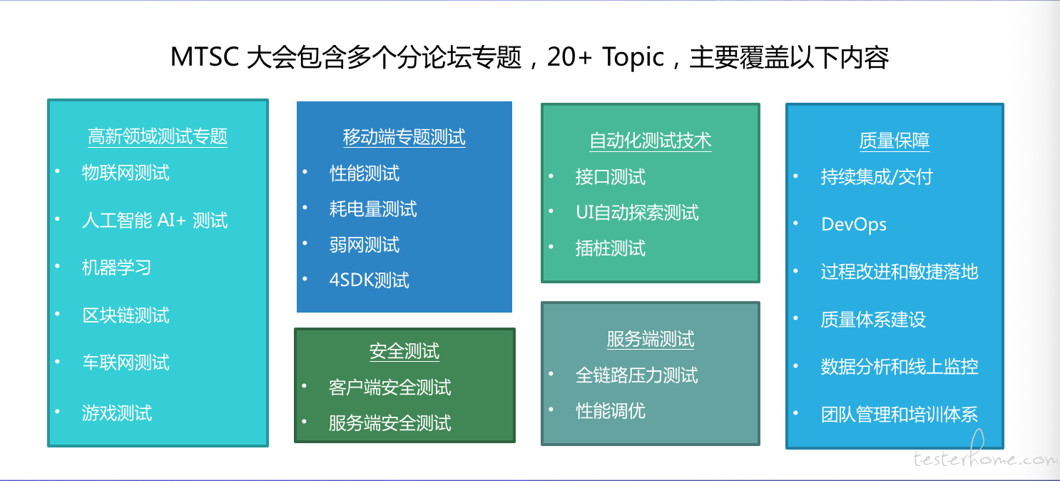 也欢迎各位测试技术专家自荐议题 Topic 至 topic@testerhome.com 。议题成功过审后,讲师不仅可得在数百人大会上展示分享的机会,且到深圳的差旅住宿费用将全部报销,并获得一张大会免费门票。