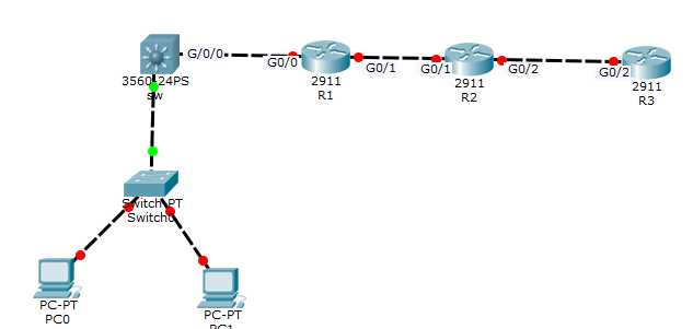 说明:R1、R2、R3之间用的是ospf,R3是DHCP服务器,SW作用是中继