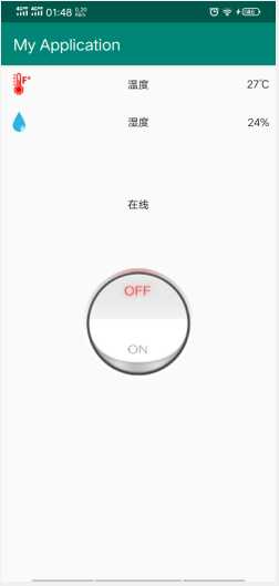 三.点击设备进入,设备控制页面,页面显示当前温湿度数据,显示当前设备的状态