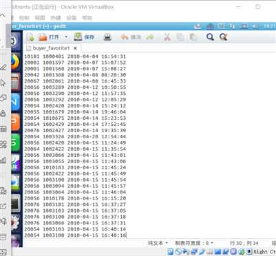 2.然后在home/hadoop目录下创建一个buyer_favorite1的文件,将实例中的数据复制粘贴到该文件里