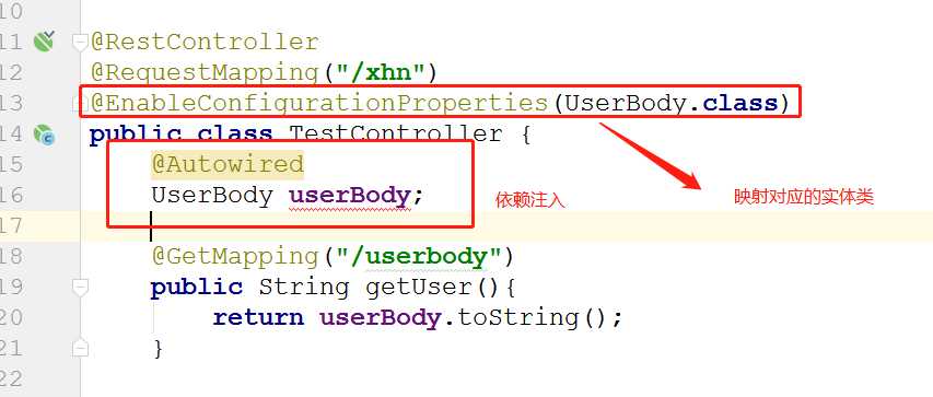 (2)、创建实体类:在前边UserBody实体中增加注解@ConfigurationProperties,并指定prrfix前缀