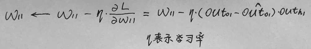 (w11等表示隐藏层和输出层之间的权值),输出为