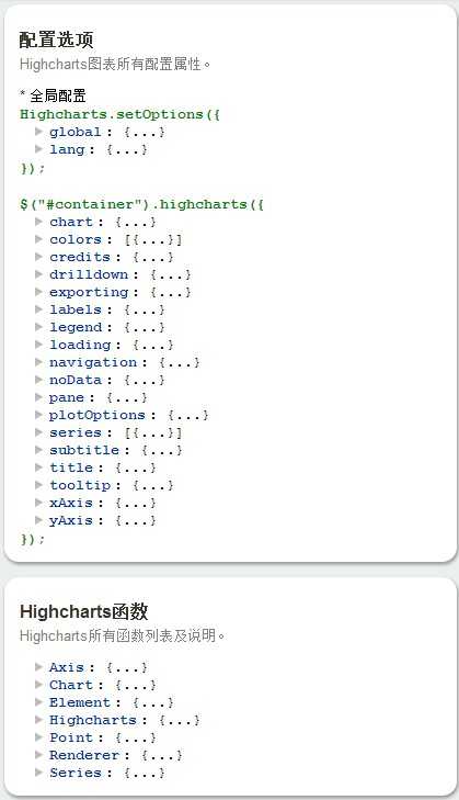 我觉得对于刚接触一个东西的新手来说,有时候对一个东西真的可能毫无头绪,这个Highcharts的官网做的挺不错的。可以一点点学起。当然,看了下面我自己试着详细注释的代码,你可能看完就知道怎么用它了。了解了它的结构,查起API文档,Highcharts真的蛮简单。希望我可以帮你节省时间,你需要的只是API文档。