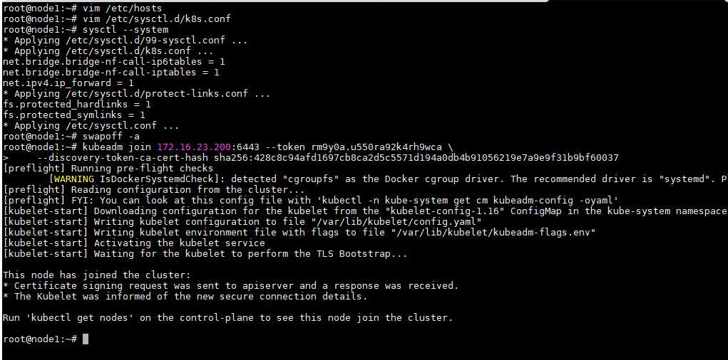 1 kubeadm join 172.16.23.200:6443 --token rm9y0a.u550ra92k4rh9wca 2 --discovery-token-ca-cert-hash sha256:428c8c94afd1697cb8ca2d5c5571d194a0db4b91056219e7a9e9f31b9bf60037