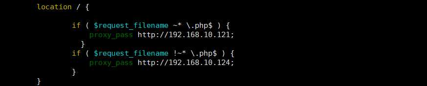 代理服务器将受到的以.php为后缀的连接请求转发给主机192.168.10.121处理,其他请求则转发至192.168.10.124主机处理