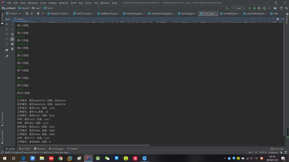 在实验的过程中,我没有用Test文件根,而是自己创建了Test文件,之后运行,得到10个测试用例。