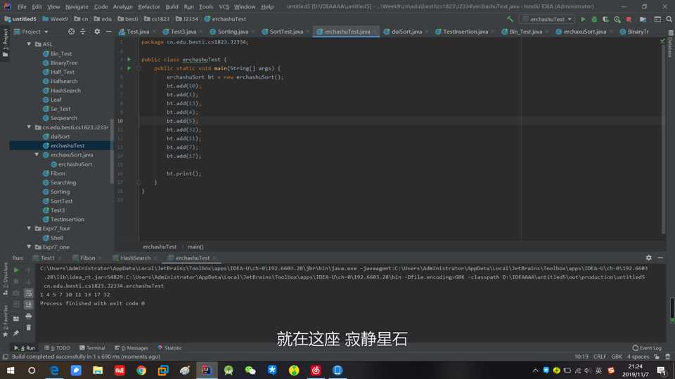 把Sorting.java Searching.java放入 cn.edu.besti.cs1823.(姓名首字母+四位学号) 包中(例如:cn.edu.besti.cs1823.G2301)