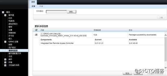 第5步:升级iDRACK和Lifecycle-Controller固件:和升级BIOS固件操作基本相同,我们在如下图所示中,选中iDRAC-with-Lifecycle-Controller_Firmware_4950Y_WN64_2.41.40.40_A00固件程序,直接点击上载即可。