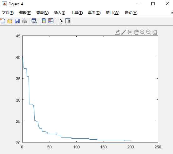 下标是基数的图是迭代200次的,分别是城市的坐标图,初始种群对应各城市之间的连线图,最佳路径图,路径长度图。下标是偶数的是迭代500次的,我定义的城市个数是25个,种群的个数是100个,交查概率为0.8.迭代200次的最佳路径是17 19 1 21 18 4 16 11 8 6 3 5 14 20 2 23 22 24 15 9 10 13 7 25 12 ,路径长度是1.858666e+01,迭代500次的最佳路径是11 6 15 20 8 7 12 5 24 25 22 18 19 23 2 1 21 14 10 13 16 3 17 9 4 ,最短路径是1.733842e+01。有上述可看出,当尘世个数、种群个数、交叉概率相等时,迭代的次数越多,则算出来的路径长度越短,路径也不相同。