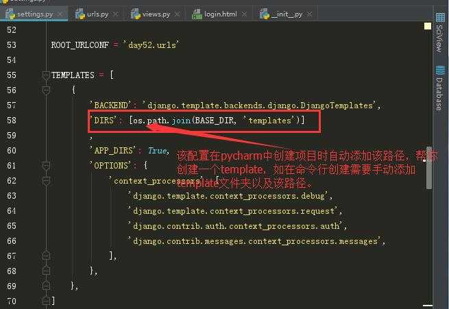用pycharm >settings创建项目时可以自定义一个app名,帮你自动创建一个应用,并自动创建template文件夹,查看配置INSTALLED_APPS没有自动添加新建的app,如果没有手动添加,TEMPLATES列表的“DIRS”如果没有添加templates文件夹的路径,手动添加一下。