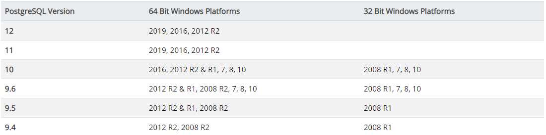 在官网看到下面的不同PostgreSQL版本需安装在相应Windows版本上。我觉得这是指PostgreSQL各版本安装在哪些Windows版本下较合适,并不带表没写的PostgreSQL版本就不能在其他Windows版本下安装。