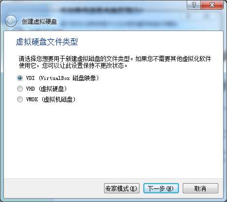 默认选项即可,默认选择的是VirtualBox虚拟机软件专用的磁盘映像格式,其他虚拟机软件可能无法读取。