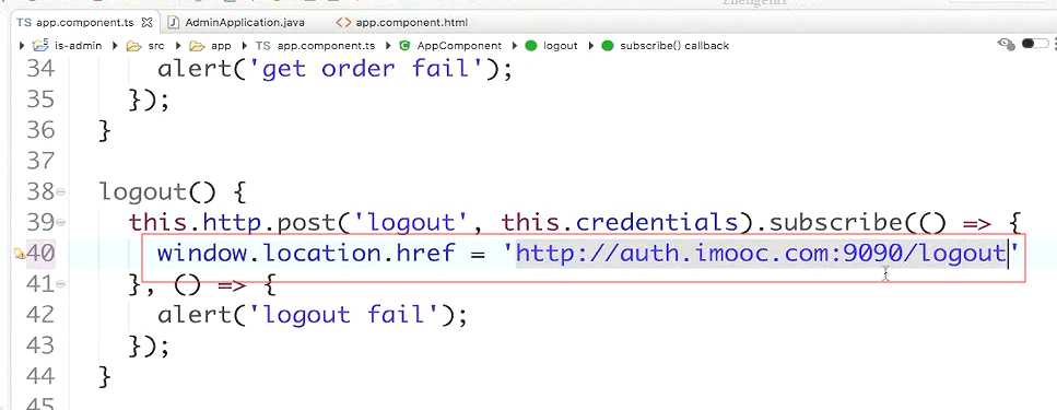 在前端服务器退出后,再跳转到认证服务器执行退出。logout是spring security默认的退出路径