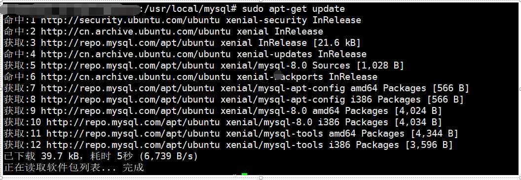 3.使用以下命令从MySQL APT存储库更新包信息(此步骤是必需的):