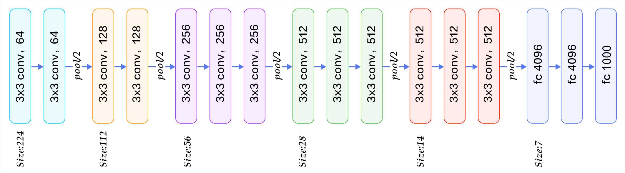 VGG是由Simonyan 和Zisserman在文献《Very Deep Convolutional Networks for Large Scale Image Recognition》中提出卷积神经网络模型,其名称来源于作者所在的牛津大学视觉几何组(Visual Geometry Group)的缩写。