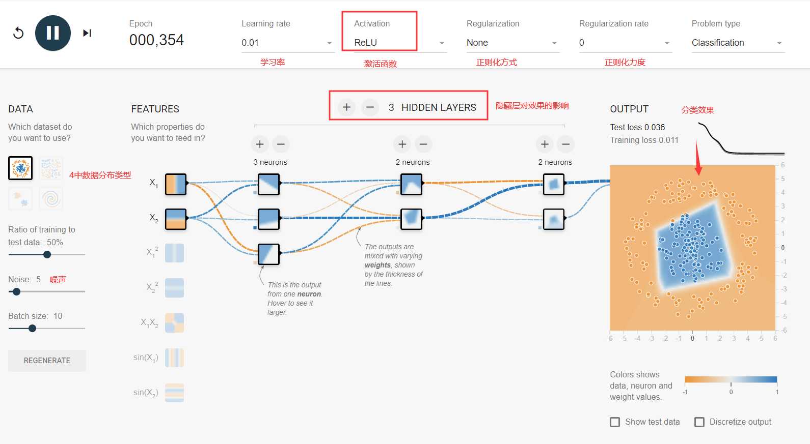 - 激活函数: 增强网络的非线性,简单理解,没有激活函数,只能画直线分割数据点;增加激活函数,可以用曲线来划分。
