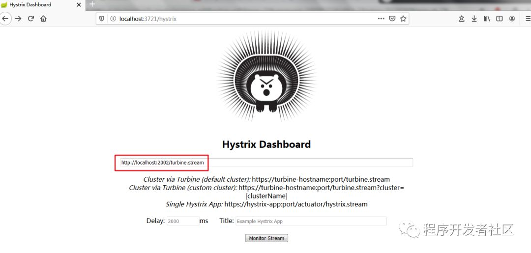 7、在 Hystrix仪表盘上输入turbine的/turbine.stream端点,http://localhost:2002/turbine.stream