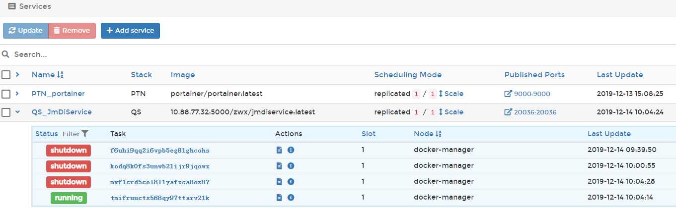 可以添加服务,对已有服务进行更新、删除,以及可以清晰的查看到服务历史运行情况。