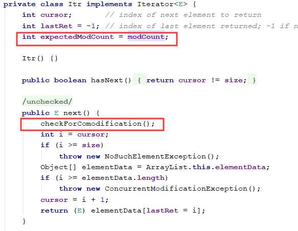 我们先来看看得ArrayList内地迭代器的部分源码: