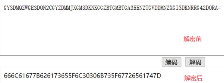 不难看出是先base64解密,再base32解密,最后是base16解密 解密完成即得flag。