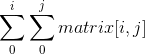 sum from [i, j] to [i + len][j + len] = prefixSum[i + len][j + len] - prefixSum[i - 1][j + len] - prefixSum[i + len][j - 1] + prefixSum[i - 1][j - 1]