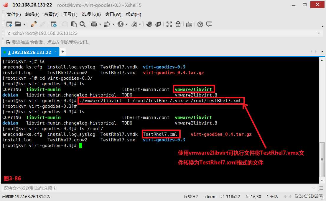 (3.5.3)首先我们要将vmware的硬盘文件转换成KVM所能读取的硬盘格式。