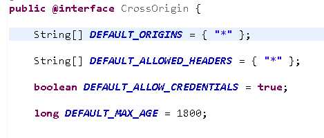 2)使用@CrossOrigin,spring能流行的一部分原因我相信有标签的功劳,使用spring标签能帮助我们更优雅简洁的编写代码,所以当我了解到有可以解决跨域问题的@CrossOrigin标签时也是毫不犹豫的用了,按照百度上大多数人的说法在方法上面加上@CrossOrigin标签就可以直接解决问题了,再不济就加上@CrossOrigin(origins=”xx”)指明允许跨域的源就可以了,但很遗憾,无论是哪种方法对我都没有作用,于是深入研究@CrossOrigin,查看其源码发现,除了allow-methods外其他四个参数都是有默认值的(注:此处是基于org.springframework 4.23版本)
