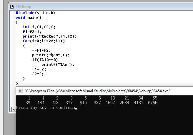 printf("%6d%6d",f1,f2); //先输出数列的前两项//