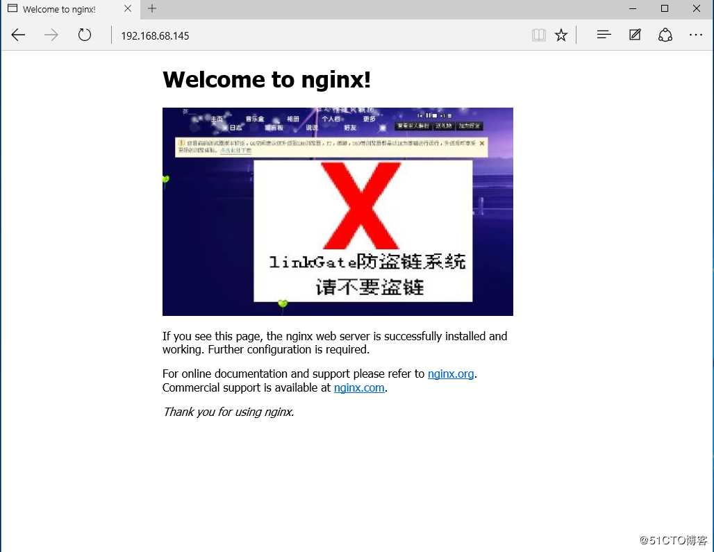 ? 环境部署准备:一台手工编译完好的nginx服务器(Centos7)、一台做盗链的win10虚拟机、一台用作测试的win10-1主机