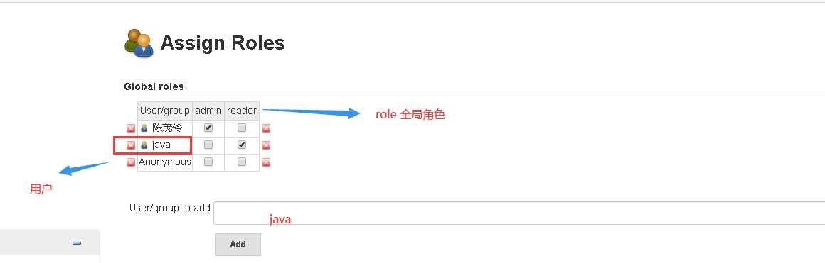 之前我们在Project roles中定义了一个规则,分别对应java.*的项目及权限,在这里我们将用户和project roles关联起来,这样对应的用户就拥有了对应项目roles的权限。