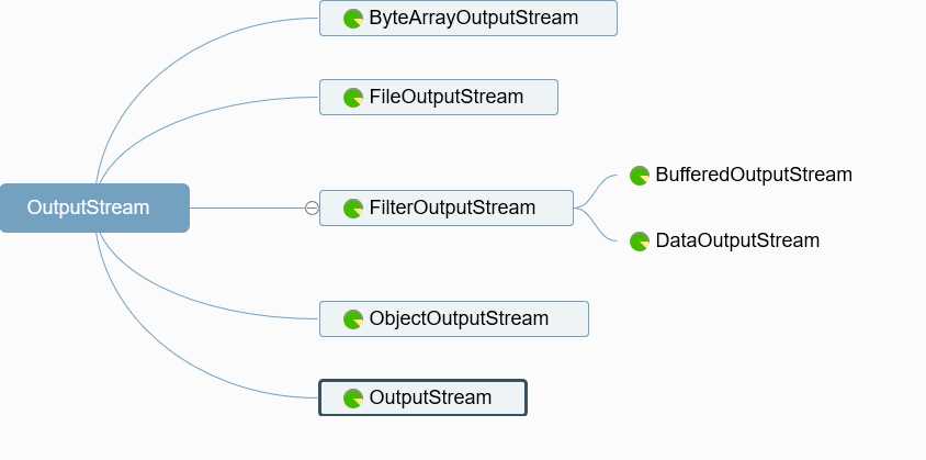 void close?() 关闭此输出流并释放与此流相关联的任何系统资源。 void flush?() 刷新此输出流并强制任何缓冲的输出字节被写出。 void write?(byte[] b) 将 b.length字节从指定的字节数组写入此输出流。 void write?(byte[] b, int off, int len) 从指定的字节数组写入 len字节,从偏移量 off开始输出到此输出流。 abstract void write?(int b) 将指定的字节写入此输出流。
