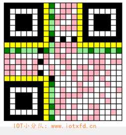 图中绿色区域为格式信息区域,其中浅绿色表示浅色模块,深绿色表示深色模块。