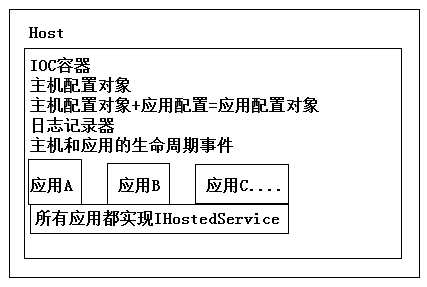 它代表主机,用来宿主(承载)我们应用(一个IHostedService的实现)。