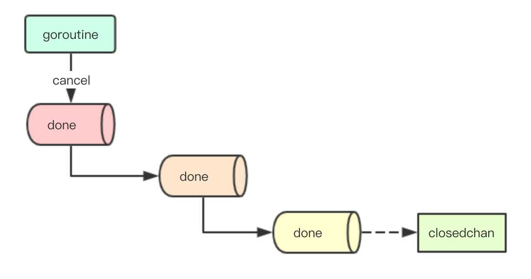 既然通过context来构建parent/child的父子关系,在实现的过程中context会向parent来注册自身,当我们取消某个parent的goroutine, 实际上上会递归层层cancel掉自己的child context的done chan从而让整个调用链中所有监听cancel的goroutine退出