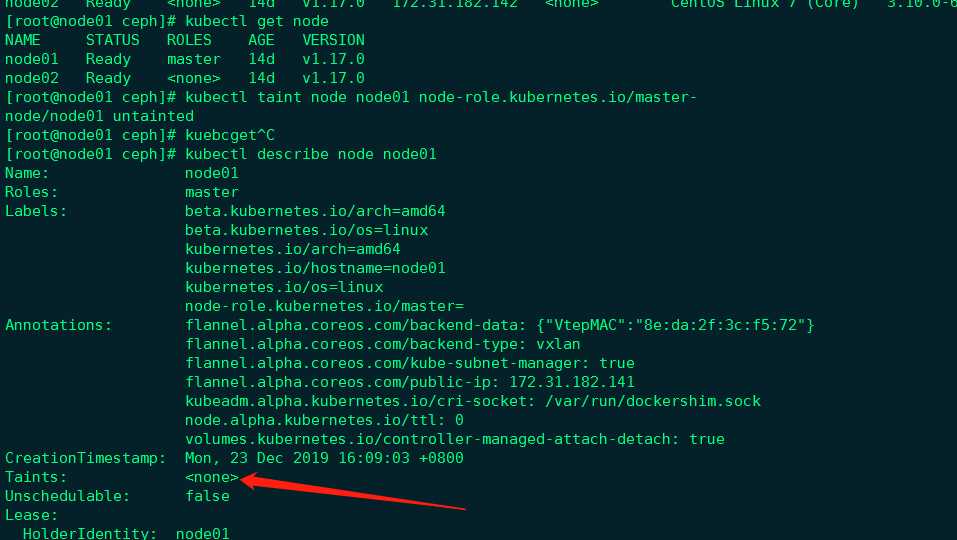 kubectl taint node node01 node-role.kubernetes.io/master-