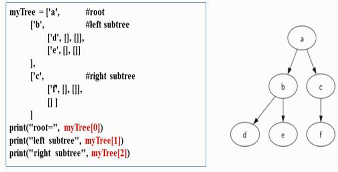 如何使用嵌套列表实现二叉树:以根节点,左子树,右子树为顺序,依次写出。
