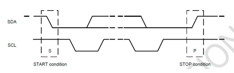当SCL为高电平期间,SDA由低电平到高电平的跳变过程;停止信号也是一种电平跳变时序信号,而不是一个电平信号,如上图虚线框所。