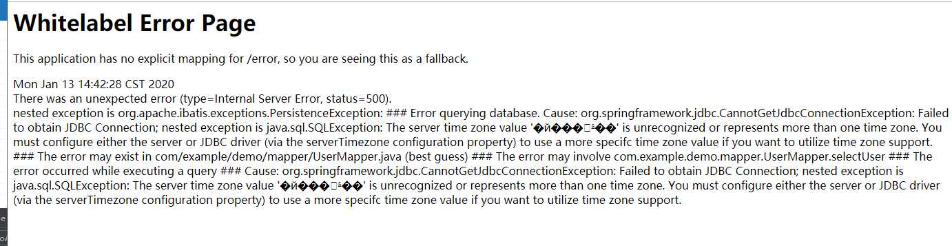 主要是配置mysql数据库的时候没有配置时区,修改: