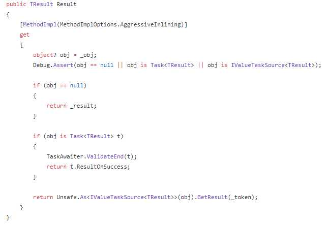 也就是说如果我们不是通过同步的方式直接得到结果,而是对Task的包装的话,获取ValueTask结果的内部其实还是通过Task在进行操作。