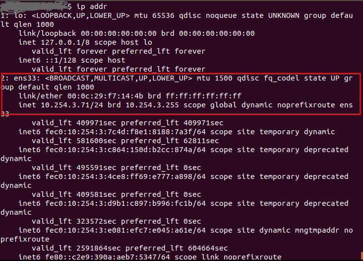 我这边设置的网络是桥接模式的 ,用ip address查看ip,如下图: