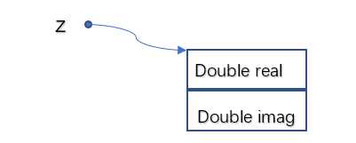 //定义结构体作为一级结构,指针变量real存放复数实部地址和指针变量imag存放虚部的地址