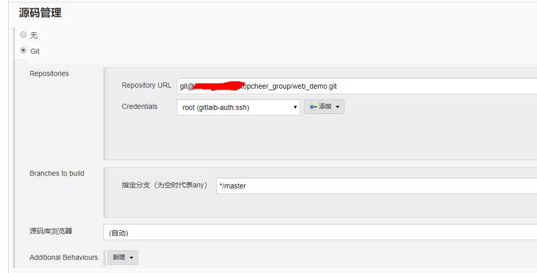 2 )配置源码管理,从gitlab拉取代码