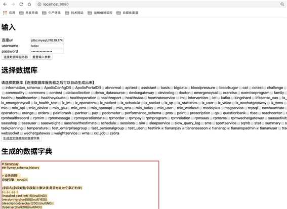 当时是写一个软件交付文档,急着交付,直接连接数据库,desc tables,复制得到内容,然后手工调整为markdown格式,12个表耗费差不多6个小时时间,现在想想真是笨的可以,造个轮子,防止后面碰到这种情况再这么痛苦;